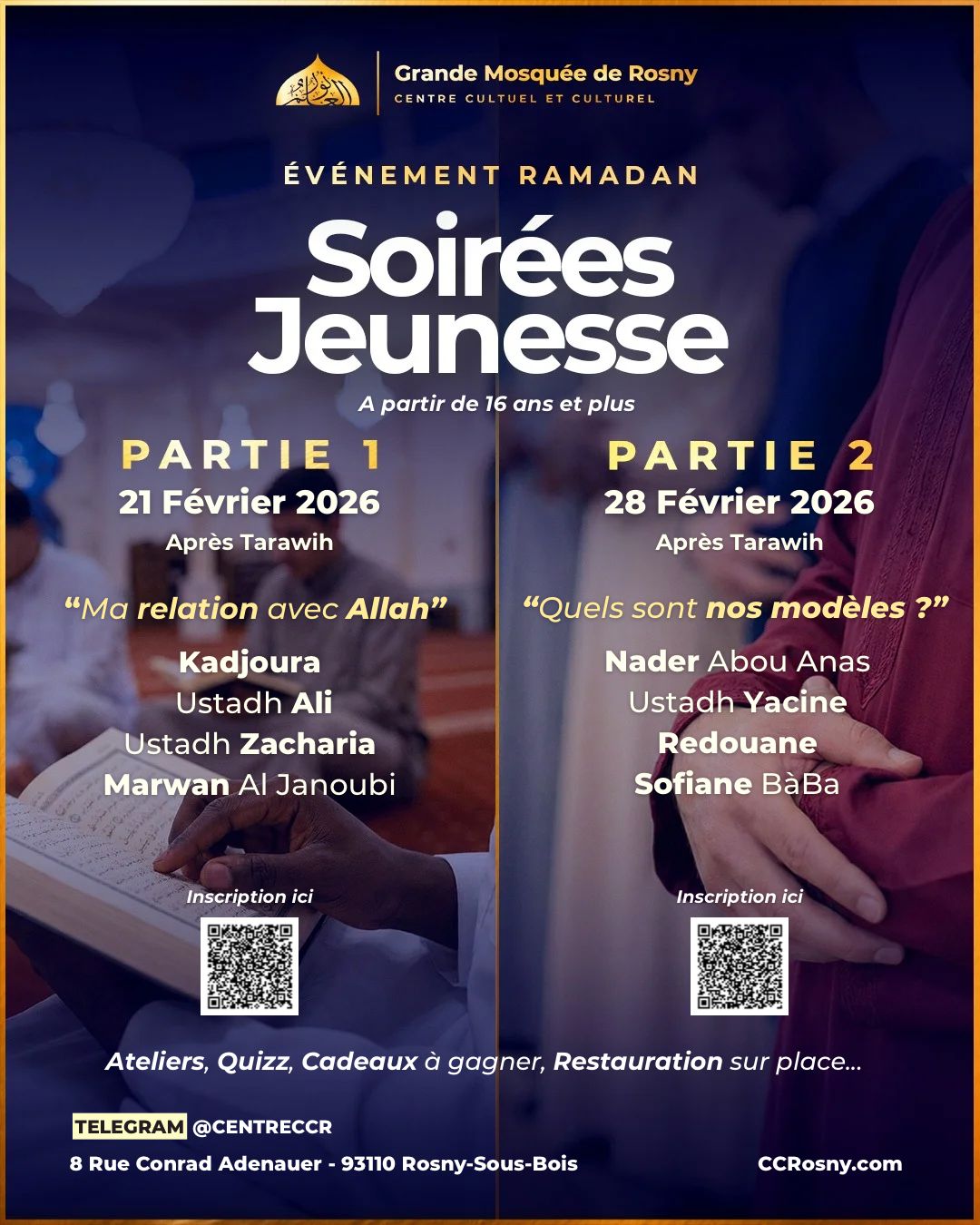 Des soirées jeunesse pendant le Ramadan pour rassembler les jeunes autour de thèmes essentiels, avec ateliers, quizz et moments de réflexion après la tarawih